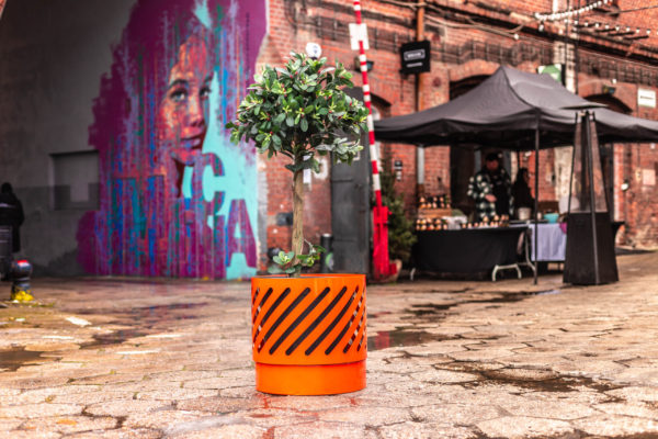 Donica została zaprojektowana w sposób zapewniający jej odpowiednią wagę i stabilność – nie przewróci jej silniejszy wiatr ani przypadkowe uderzenie. Jest bezpieczna zarówno dla pieszych, jak i rowerzystów, a jej konstrukcja umożliwia solidne zakotwiczenie w podłożu, jeśli zajdzie taka potrzeba.