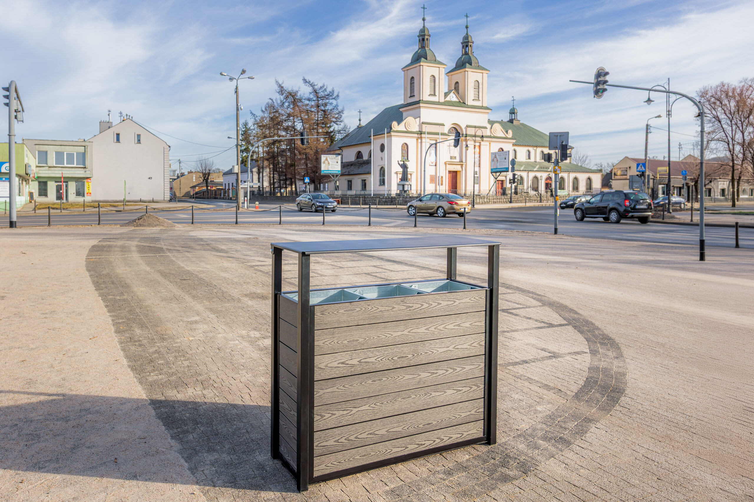 Dzięki temu kosz do segregacji odpadów Narcyz WPC dobrze odnajduje się zarówno w nowoczesnych realizacjach, jak i w bardziej klasycznych przestrzeniach miejskich.