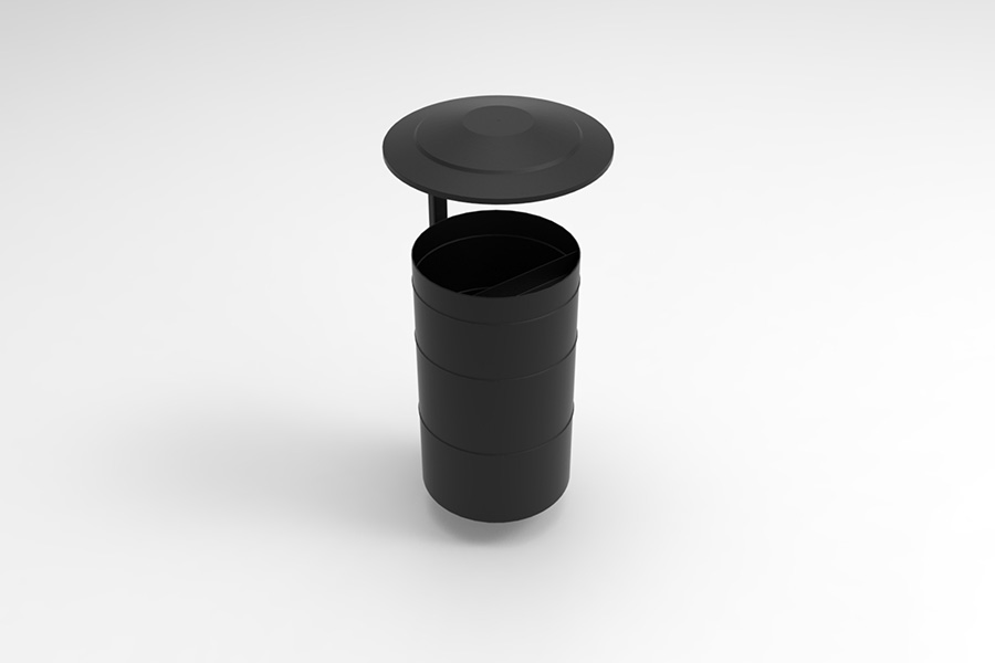 Kosz Miejski z daszkiem wykonany jest ze stali malowanej proszkowo, co gwarantuje nie tylko wysoką odporność na korozję, ale także estetyczny wygląd przez wiele lat. Malowanie proszkowe zabezpiecza przed uszkodzeniami mechanicznymi, a kolor RAL 9005 (czarny głęboki mat) – stosowany w standardzie – nadaje koszowi nowoczesnego, a zarazem uniwersalnego charakteru.