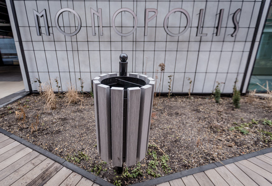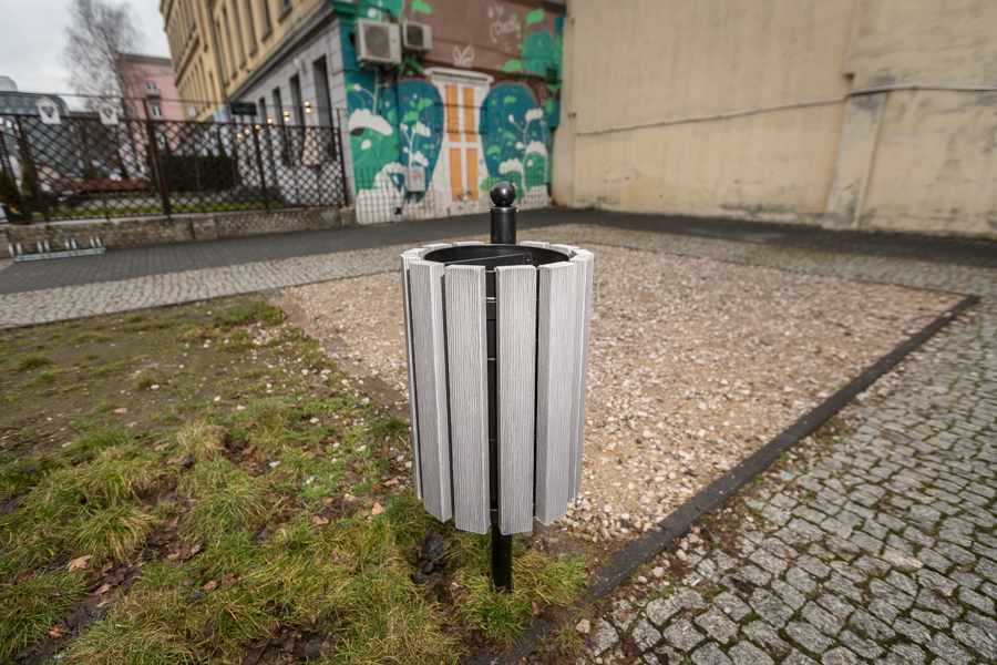 Kosz Genewa WPC łączy funkcjonalność z nowoczesnym designem. Surowce, z których został wykonany, nadają mu elegancki i minimalistyczny charakter, który harmonijnie komponuje się z różnymi przestrzeniami – zarówno w parkach, na skwerach, jak i w miejskich woonerfach czy przy alejkach spacerowych. Kompozytowe elementy dodają lekkości wizualnej, a stalowe ramy zapewniają solidność i industrialny akcent.
