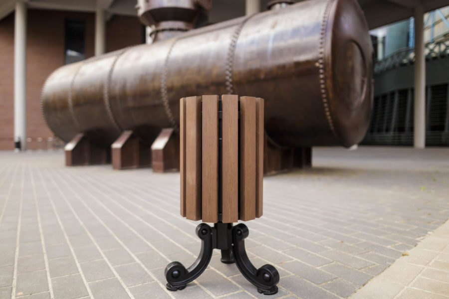 Kosz uliczny Praga WPC stanowi harmonijne, a jednocześnie odważne połączenie klasyki oraz nowoczesności. Projektując go, połączyliśmy stylizowaną, żeliwną podstawę z elementami stalowymi oraz kompozytowymi, które doskonale imitują drewno. Dzięki temu finalny produkt wpisuje się w różnorodne otoczenia – zarówno w historyczne starówki, jak i nowoczesne przestrzenie miejskie. Minimalistyczna forma kosza, uzupełniona wyrafinowanymi detalami, sprawia, że jest on estetycznym dodatkiem, który podnosi atrakcyjność otoczenia.
