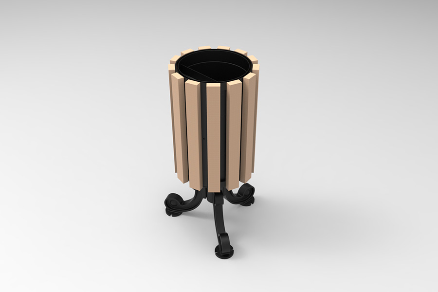 Elementy kompozytowe w koszu Praga WPC zostały starannie zaprojektowane, aby nadawać lekkości i elegancji całej konstrukcji. Stylizowana żeliwna podstawa dodaje koszowi klasycznego charakteru, a jednocześnie zapewnia solidne oparcie i stabilność. Minimalistyczny design kosza sprawia, że jest on wyrobem ponadczasowym, który nie zdominuje otoczenia, lecz w subtelny sposób uzupełni przestrzeń miejską.