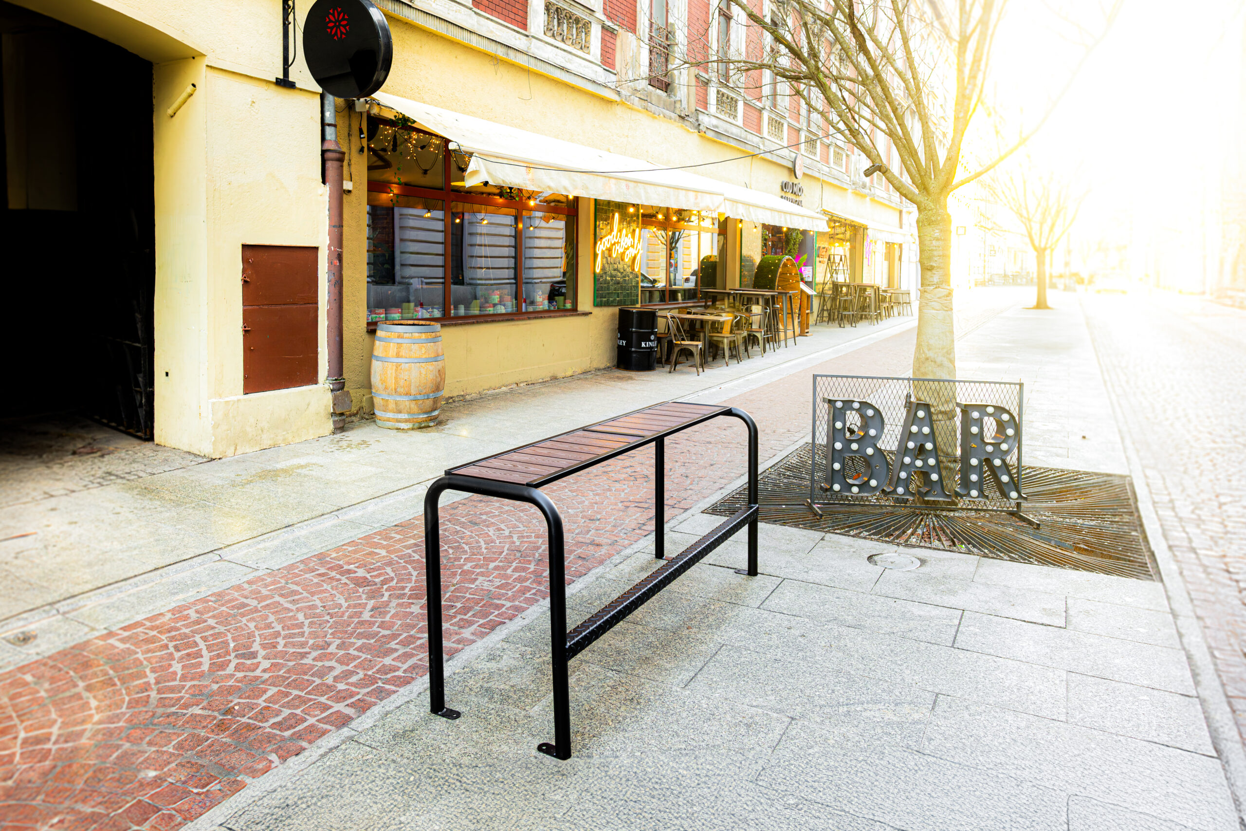 Wizualna lekkość ławki sprawia, że można ją swobodnie zestawiać z innymi elementami małej architektury – koszami, stojakami rowerowymi, donicami czy pergolami – tworząc spójną i estetyczną przestrzeń przyjazną użytkownikom.