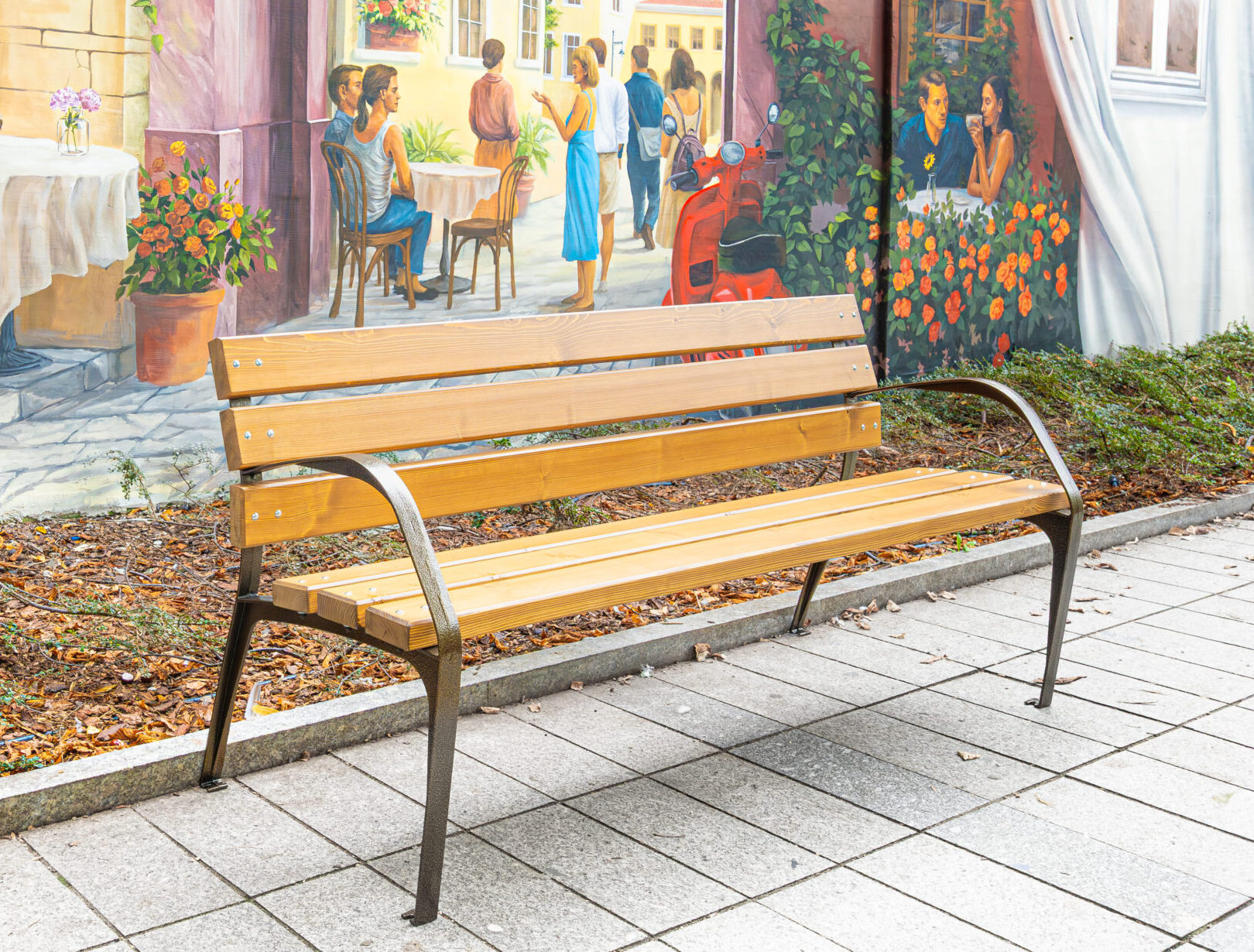 Ławka parkowa Kleopatra to harmonijne połączenie nowoczesnego designu, naturalnego drewna i trwałego żeliwa sferoidalnego. Trzy deski na siedzeniu i trzy na oparciu zapewniają maksymalny komfort, a ergonomiczne wyprofilowanie wspiera prawidłową postawę.
