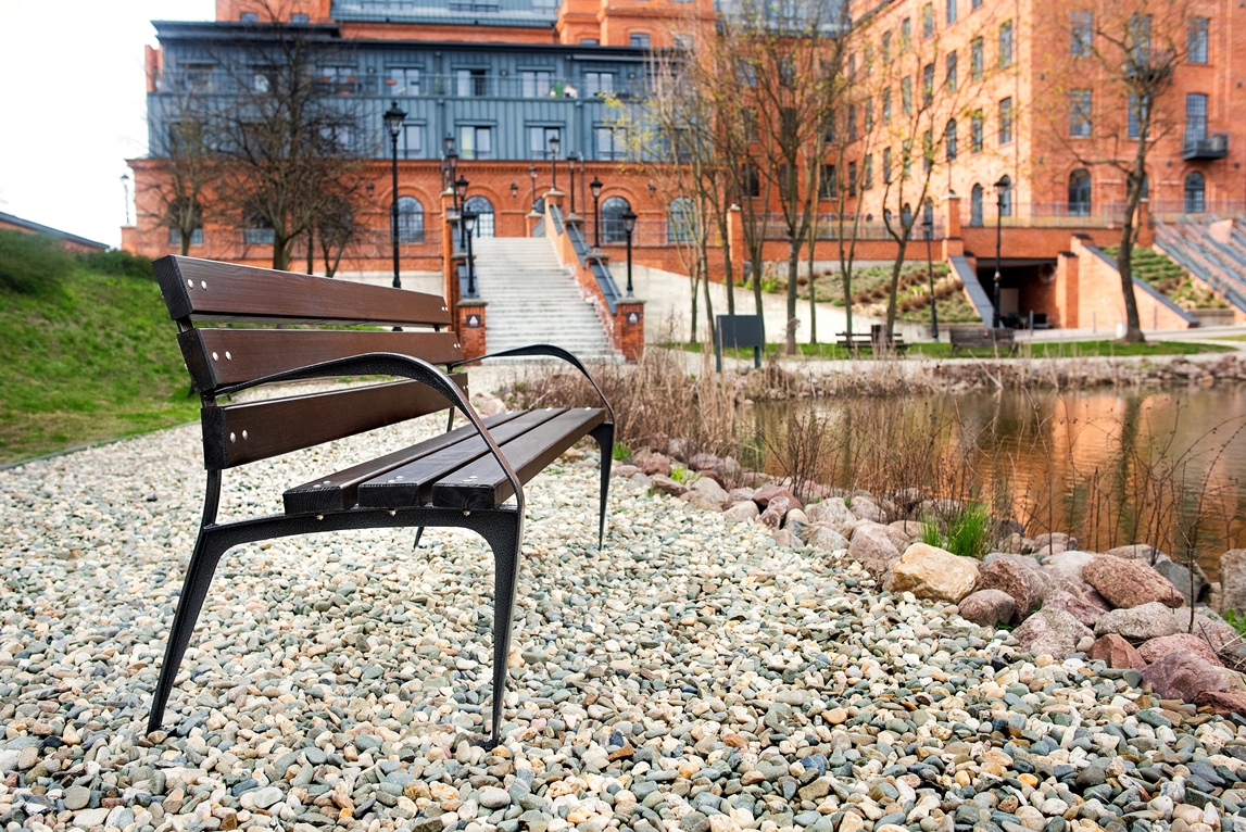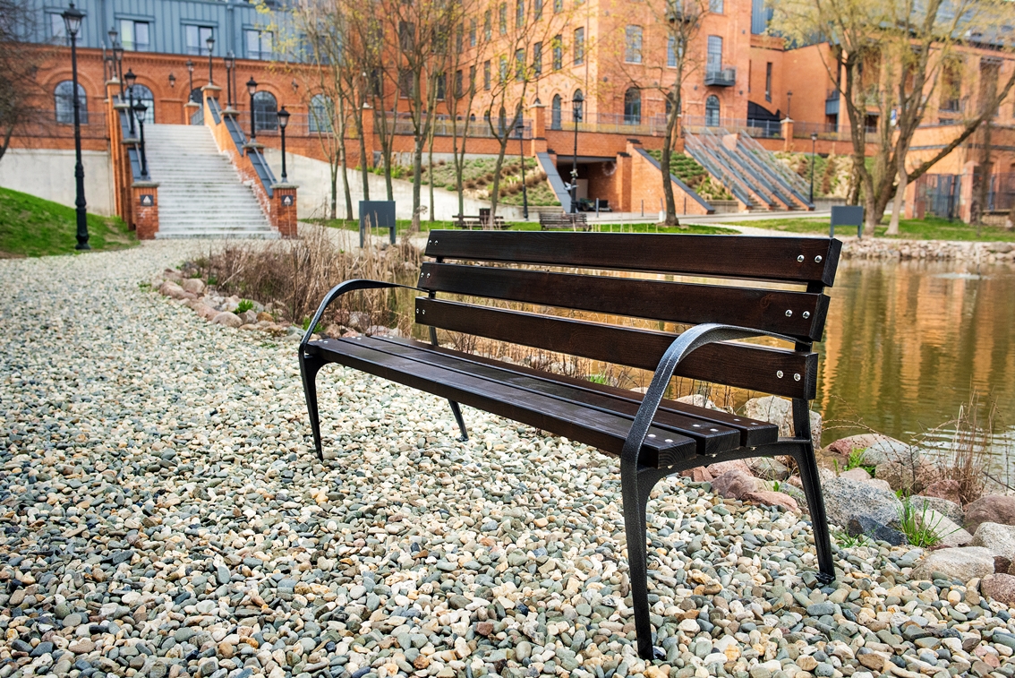 Połączenie odlewów żeliwnych z naturalnym drewnem tworzy harmonijną kompozycję wizualną, która przyciąga wzrok i dodaje przestrzeni wyjątkowego charakteru. Subtelne wykończenia i precyzyjne detale odlewów nadają ławce efekt „wow”, czyniąc ją atrakcyjnym elementem małej architektury.