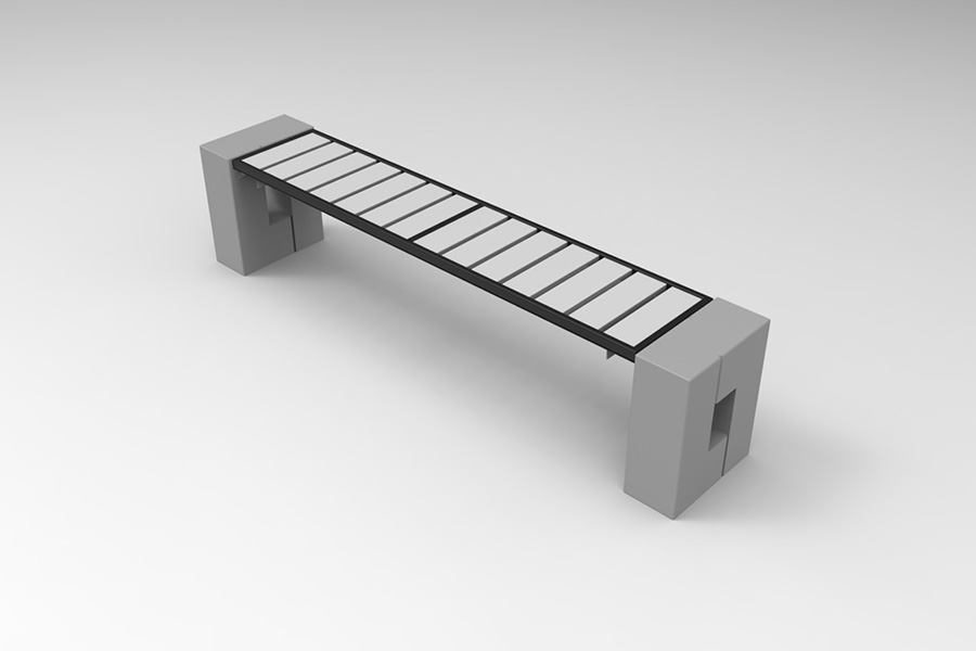 Ławka parkowa Roma WPC bez oparcia jest przystosowana do montażu na stałe za pomocą kotew mocowanych do spodów prefabrykatów betonowych.