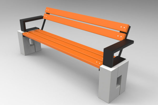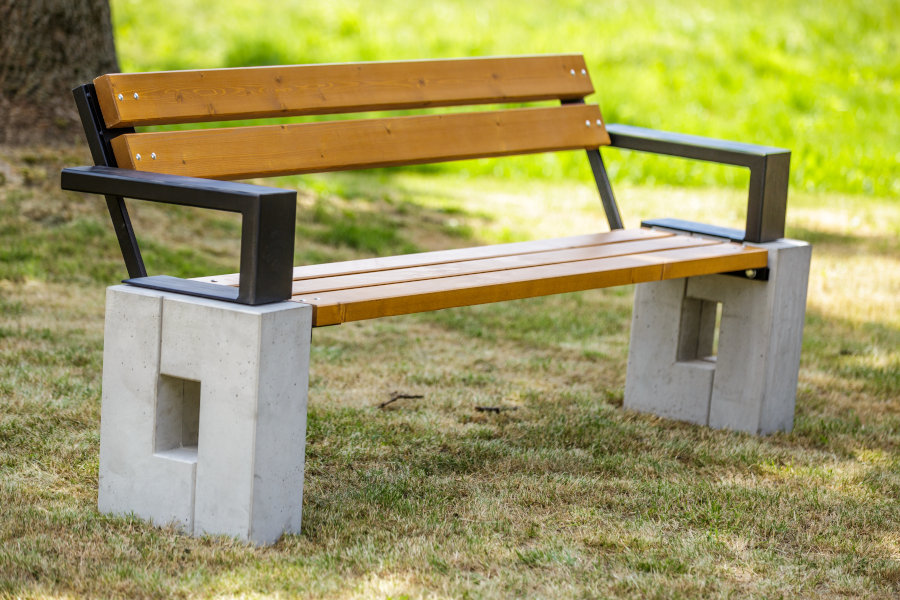 Zamontowany po bokach ławki podłokietnik pełni funkcję pomocniczą przy siadaniu i wstawaniu. Jest to szczególnie ważne w przypadku użytkowników starszych, osób z ograniczoną mobilnością lub opiekunów dzieci. Jego wysokość i kąt nachylenia zostały dostosowane do naturalnego ułożenia rąk podczas korzystania z ławki. Dzięki zastosowaniu stalowego podłokietnika konstrukcja ławki zyskała również nowy, bardziej dynamiczny kształt.
